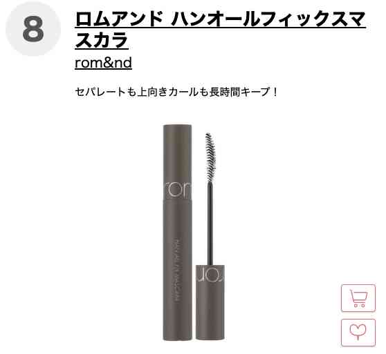 第八名 rom and纤长/卷翘睫毛膏