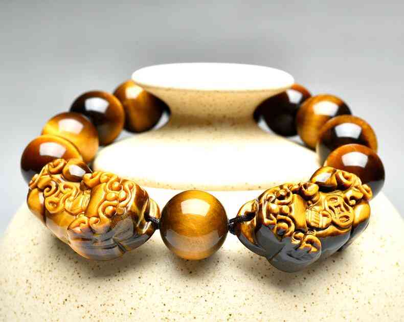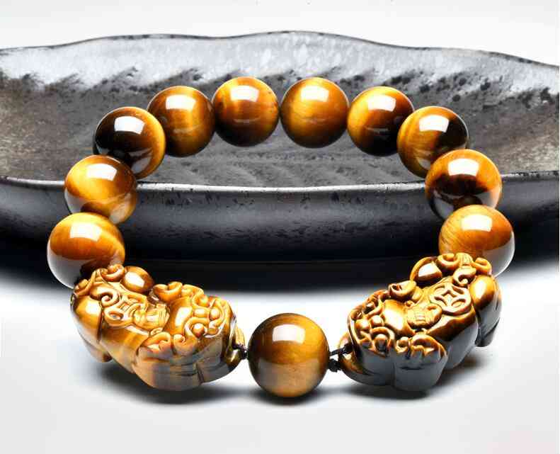 黄虎眼石被印度人视为最尊贵象征的圣石,矿石为业岩,因此有着排列整齐的结晶,进而反射出如猫眼般的璀璨光芒,一般为黑黄相间的色泽,象老虎的纹路。黄虎眼石能防止产生忧郁症及身心症,并可激发人的勇气。使人做事能贯彻始终,做人能坚守原则;亦可加强肉体生命力,适合体弱多病、或刚痊愈的病人配戴。带来信心,个性欠坚强果断的人,而且能鼓励创意的追求、冷静及平衡。传统上,它能治疗下肢的疾病,也能治疗眼疾。但它最能治好消化系统疾病,尤其那些由于神经而起的虎眼石金黄色的色光对应太阳轮也对应脐轮,对暴饮暴食后身体的不适有重新净化及调整的功能,并可为身体带来温暖的感觉,可迅速改善感冒症状及哮喘与支气管炎,也能运用它本身的能量加强关节与骨骼,安抚镇定神经系统。如同虎眼般的活力能量,可使人更容易在事业上有所突破,懂得自律,化解压力达成目标,过着幸福快乐的生活,也可提高注意力与集中力,保持头脑的清晰,使思维灵活。生理作用-猫眼石黄金色对应太阳轮也对应脐轮,对暴饮暴食后身体的不适又重新净化和调整的功能,并可为身体带来温暖的感觉,可迅速改善感冒症支气管炎,也能运用它本身的能量加强关节和骨骼,安抚镇定新陈代谢的神经系统。心理作用-如同虎眼般的活力能量,可使人更容易在事业上有所突破,懂得自律。化解压力达成目标,过着幸福快乐的生活,也可以提高注意力和集中力,保持头脑的灵活。黄虎眼俱黄色色光对应太阳轮,对肠胃有帮助,金黄色的黄虎眼石也是财富的象征,有助于招来意想不到的财富或偏财。
