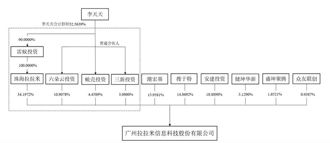 IPO前,公司的实控人为李天天,其通过珠海拉拉米、六朵云投资、蜕壳投资和三新投资控制公司52.5639%的投票表决权,间接持有公司46.7620%的股份。