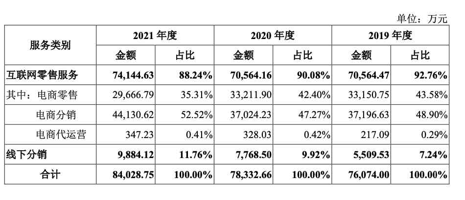 这里需要说明拉拉米的销售模式,公司主要分为电商零售、电商分销、电商代运营三种互联网零售模式以及线下分销模式,报告期内电商零售和电商分销收入合计占比在90%左右,两者均通过买断品牌方产品并对外销售以获得收入,差异在于前者直接在电商平台开设店铺直接销售给消费者,后者是先销售给下游电商分销客户,再由下游电商分销客户进行销售;另电商代运营指公司向品牌方店铺提供电商服务,并向品牌方收取相关运营服务费。