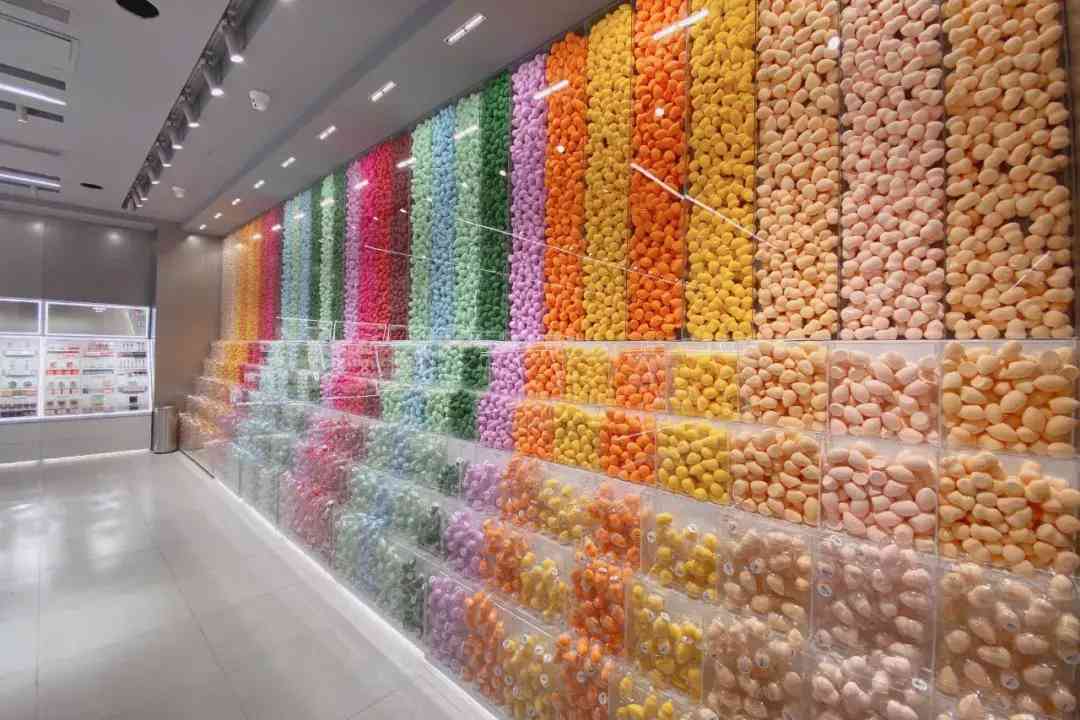美妆蛋墙,绝对是到店必拍照的!软乎乎的美妆蛋,拼成了一面蛋蛋彩虹墙,来的女生无一不打卡拍照。