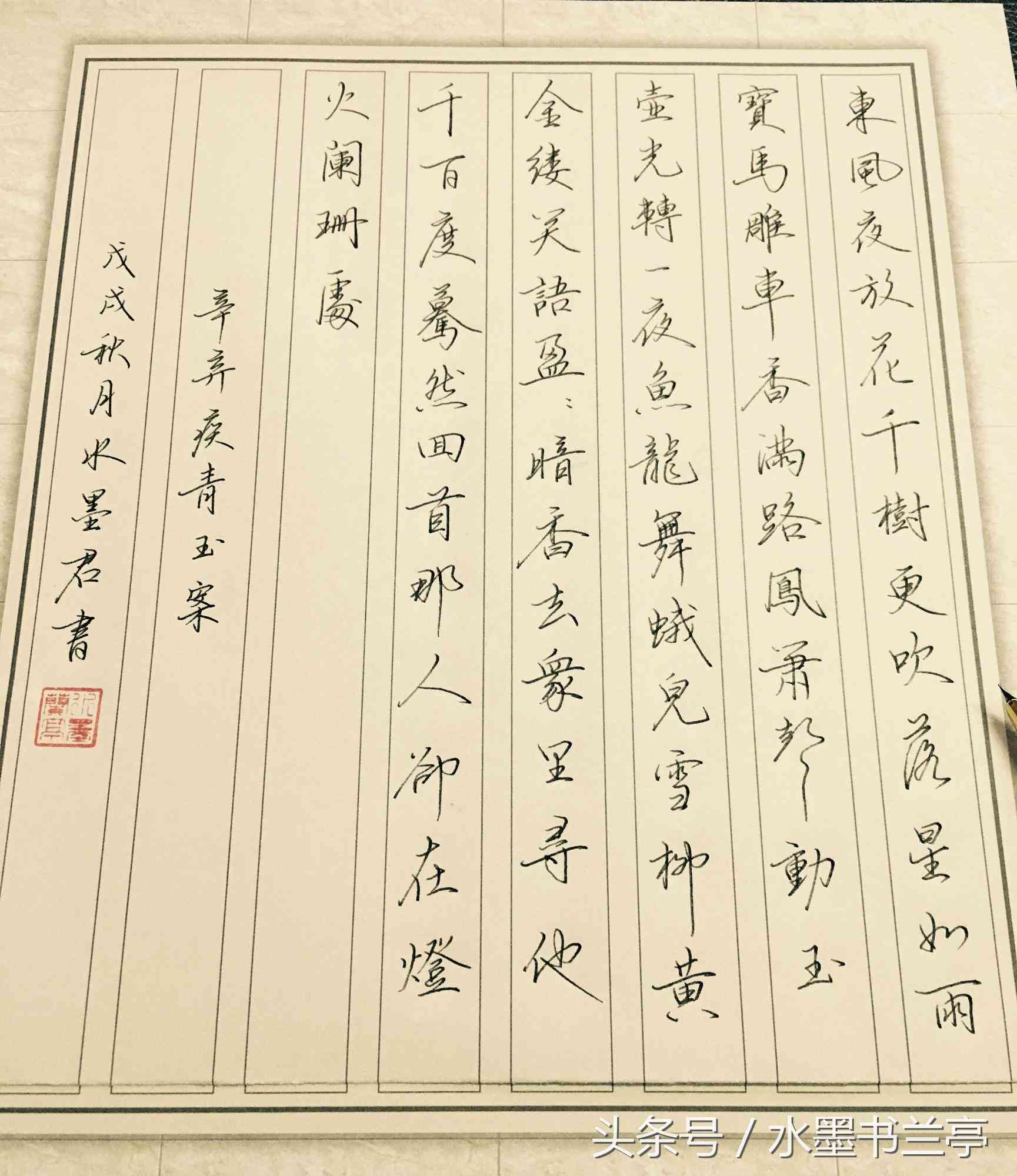像东风吹散千树繁花一样,又吹得烟火纷纷,乱落如雨。豪华的马车满路芳香,悠扬的凤箫声四处回荡,玉壶般的明月渐渐西斜,一夜鱼龙灯飞舞笑语喧哗。美人头上都戴着亮丽的饰物,笑语盈盈地随人群走过,身上香气飘洒。我在人群中寻找她千百回,猛然回头,不经意间却在灯火零落之处发现了她。