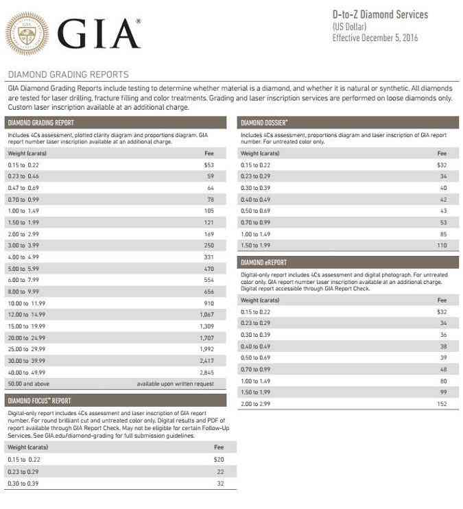 GIA及美国宝石学院,是目前全世界最权威的钻石鉴定机构,据GIA官网钻石鉴定费用价格表,钻石越大所需鉴定费用越高。其中,常见的30分钻石鉴定费用为59美金(约407元人民币),50分钻石鉴定费用为64美金(约441元人民币),1克拉钻石鉴定费用则是110美元(约758元人民币)。