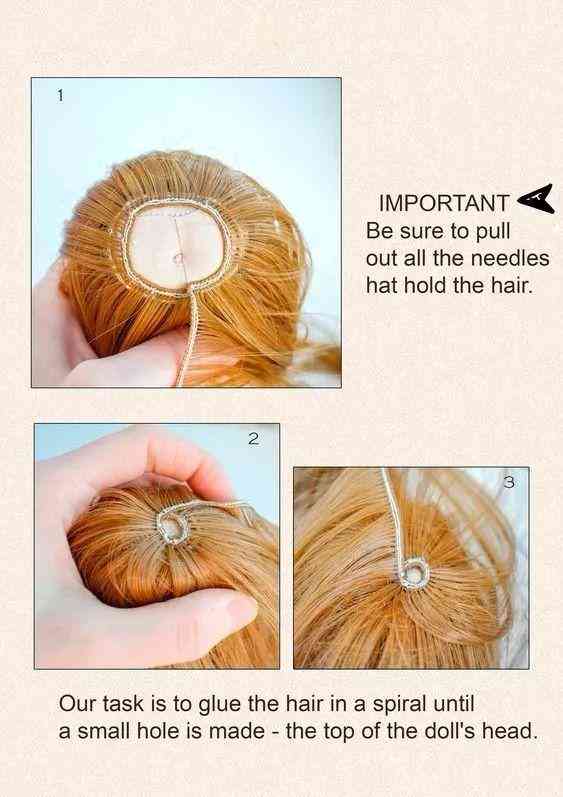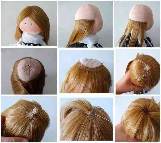 娃娃的头发可买仿真的发丝,有专门做娃娃一类用,网上可以买。可用针线缝上去或用热熔胶粘上去。