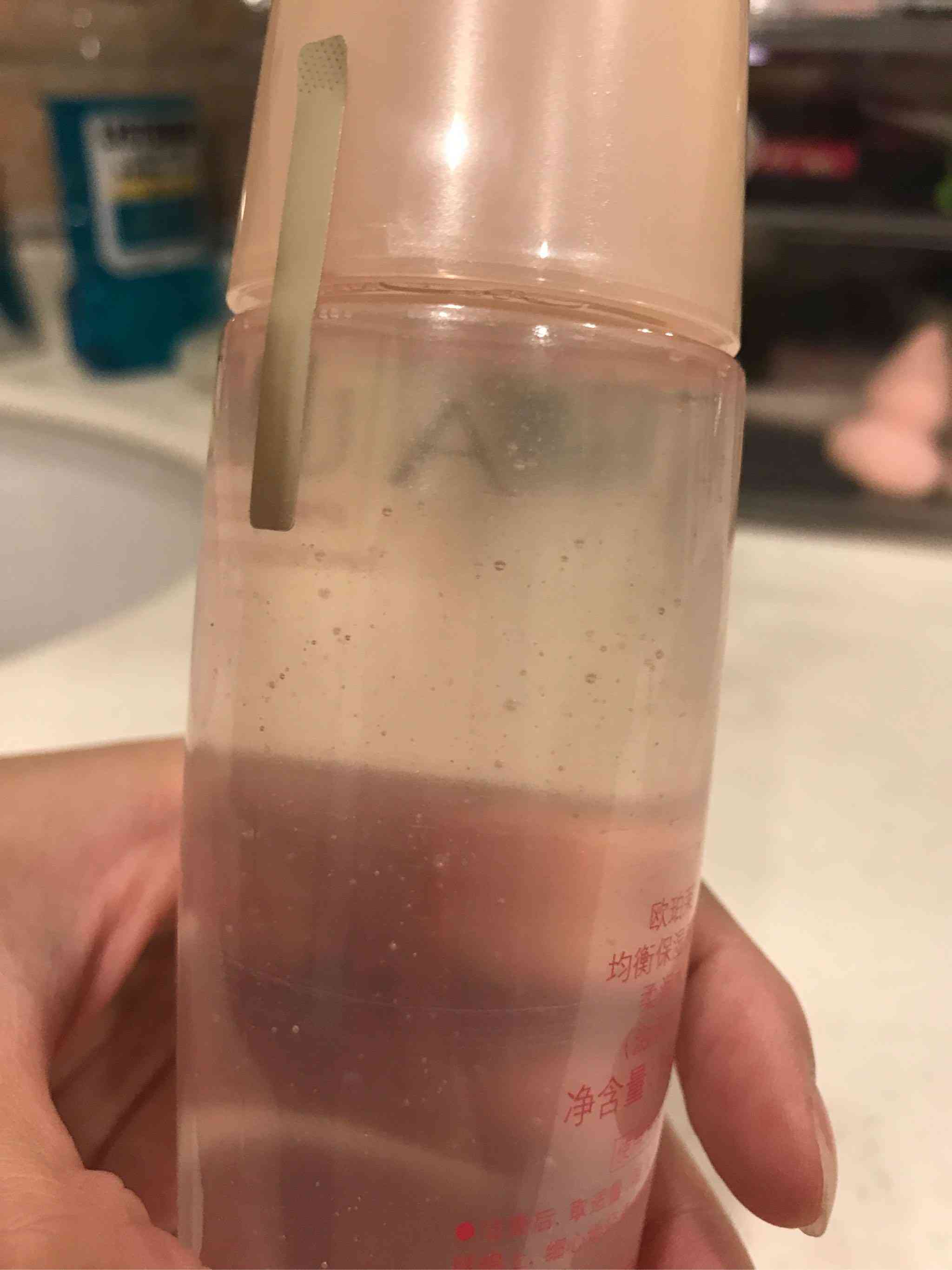 晃了晃液体,比较粘稠,摇晃后有小气泡悬浮于液体中间。有种韩系品牌精华水的感觉。