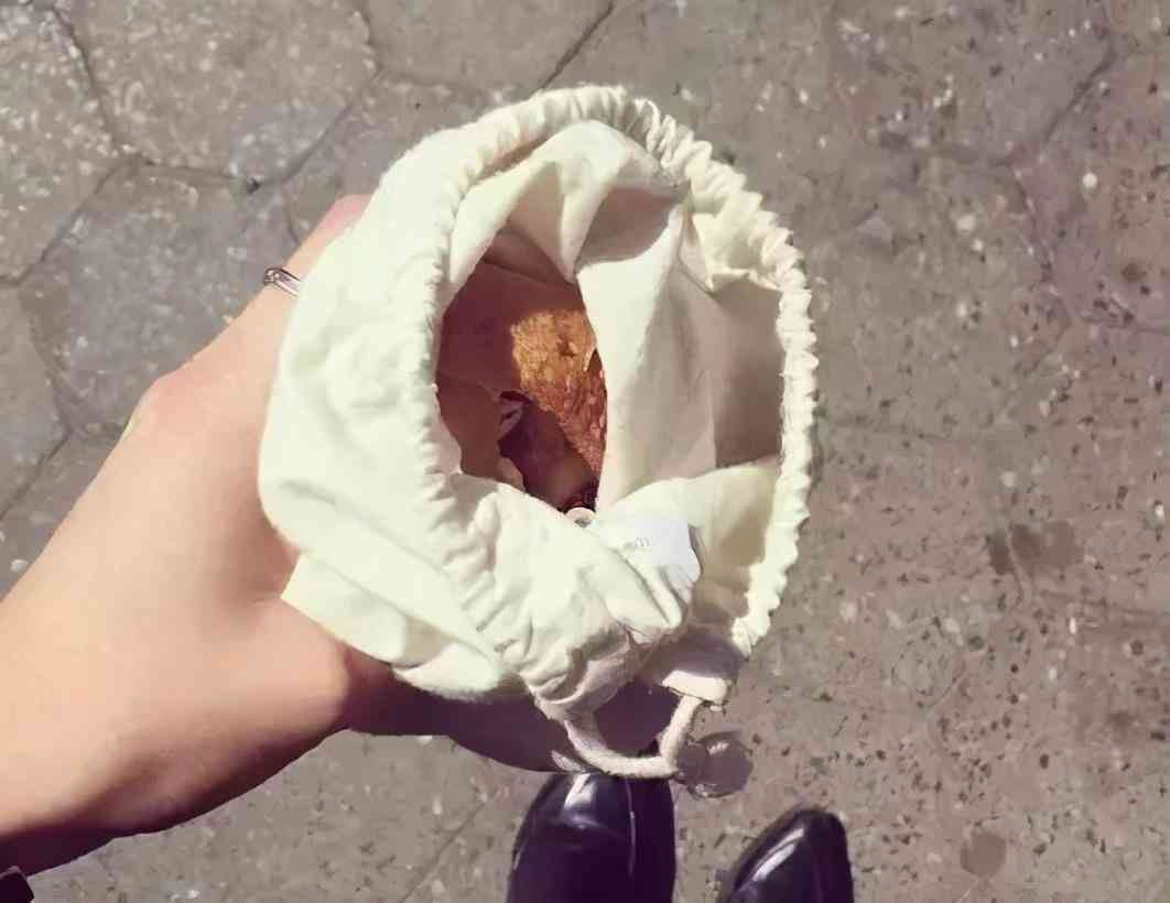 煎饼、汉堡的塑料纸包装不能要,改用方巾包裹。
