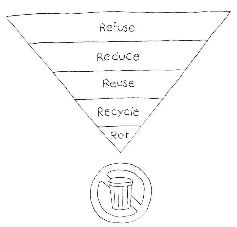 Refuse —> Reduce —>Reuse —> Recycle —> Rot