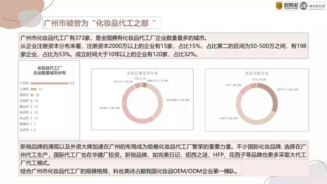 广州化妆品企业数量最多,地理优势和供应链优势明显,是当之无愧的“化妆品代工之都”;上海则有更多的外资企业,优质企业数量占比更高,是化妆品高质量发展的中坚力量。