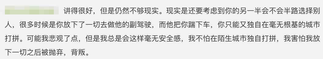 《奇葩说》里,面对一道“该不该抛下一切为了另一半去大城市”的辩题。
