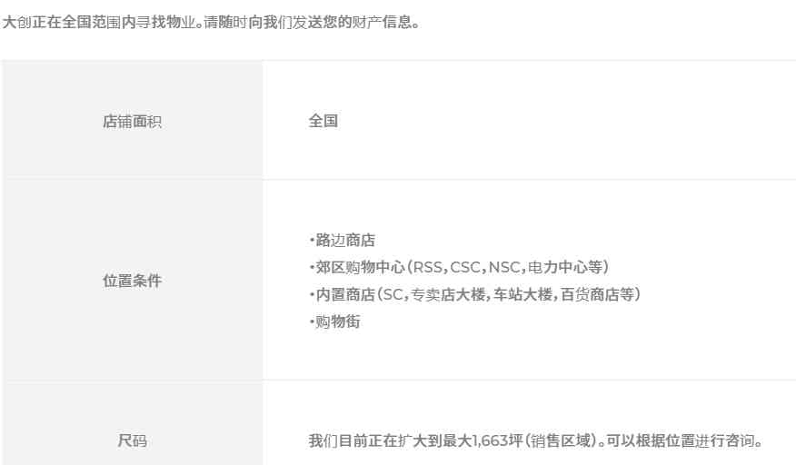 大创的店铺物业招募条件|资料来源:大创官网