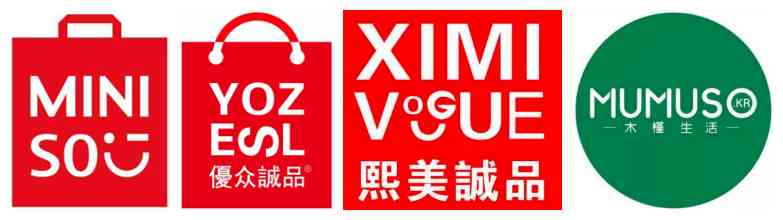 除了名创优品(Miniso),中国的“十元店”阵营还有为数众多的MUMUSO、YOYOSO们,从名字到logo傻傻分不清楚。