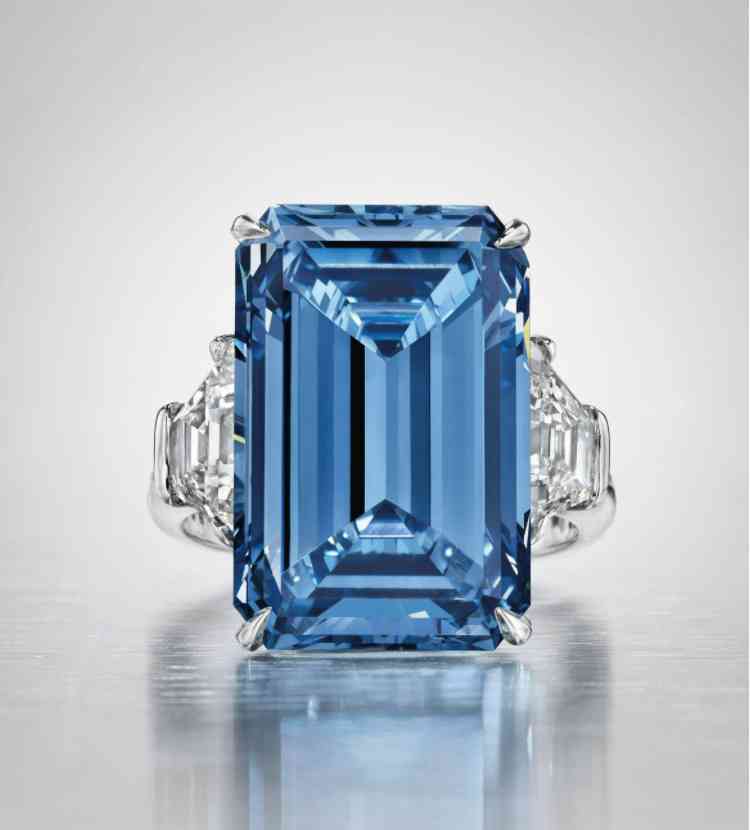 作为有史以来最大的蓝色钻石,奥本海默蓝钻(Oppenheimer Blue)以其前任所有者菲利普·奥本海默爵士的名字命名。这颗14.62克拉的钻石切割做工和质地都十分出色,饱和度和清晰度也是属于.别。在2016年的佳士得拍卖会上最终以5740万美元(约3.35亿人民币)的价格被一位匿名买家所得。
