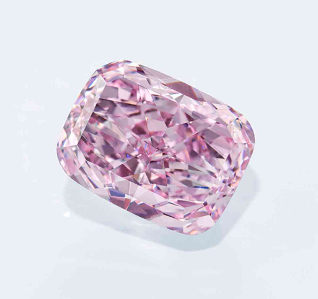 经美国宝石学院鉴定,这颗14.83克拉粉钻为Type IIa型钻石,达到Fancy Vivid Purple-Pink色级和 IF 净度,拥有生动而丰富的色调,苏富比描述其为“自然奇迹”。