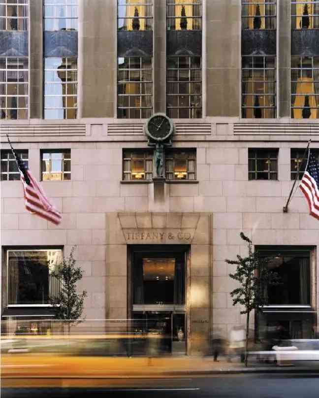 纽约第五大道的蒂芙尼旗舰店大门正上方,希腊神话顶天巨神Atlas的塑像托举着大钟,钟面上刻有罗马数字浮雕,自1853年揭幕以来便成为蒂芙尼各专卖店的独特标志。