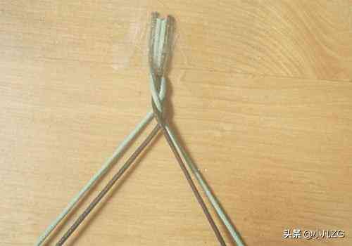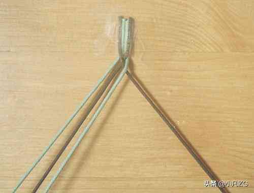 两根红绳手链编法第1步:准备两种颜色的绳子、金属扣子。