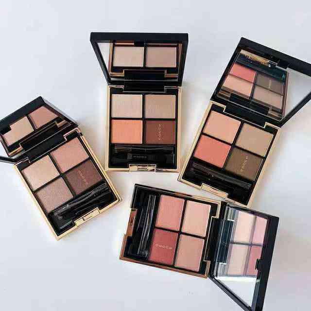 SUQQU四色眼影盘,每个颜色都很美很柔和,比较仙女风,颜色清透不飞粉、不褪色,价格和质量成正比,适合日常使用;Tom Ford幻魅四色眼影盘