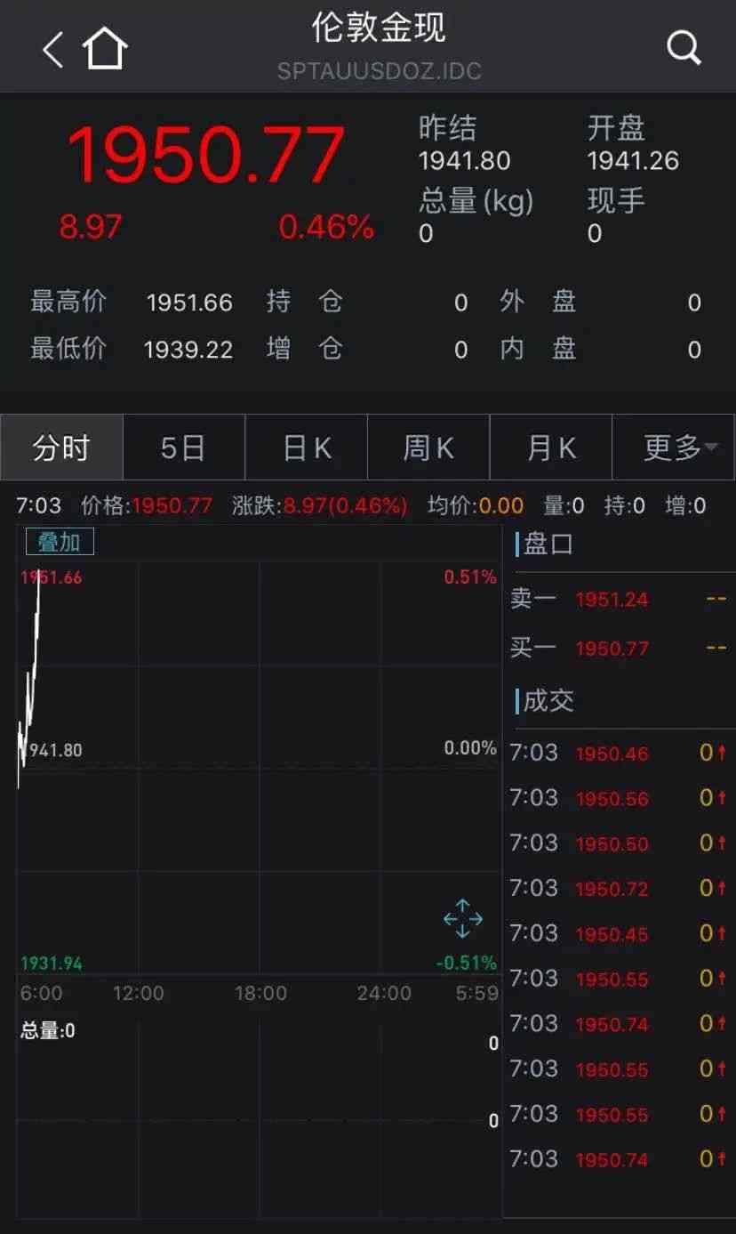 现货黄金站上1950美元/盎司关口