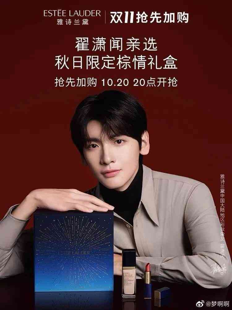 10月19日,翟潇闻成为雅诗兰黛中国大陆地区彩妆挚友。