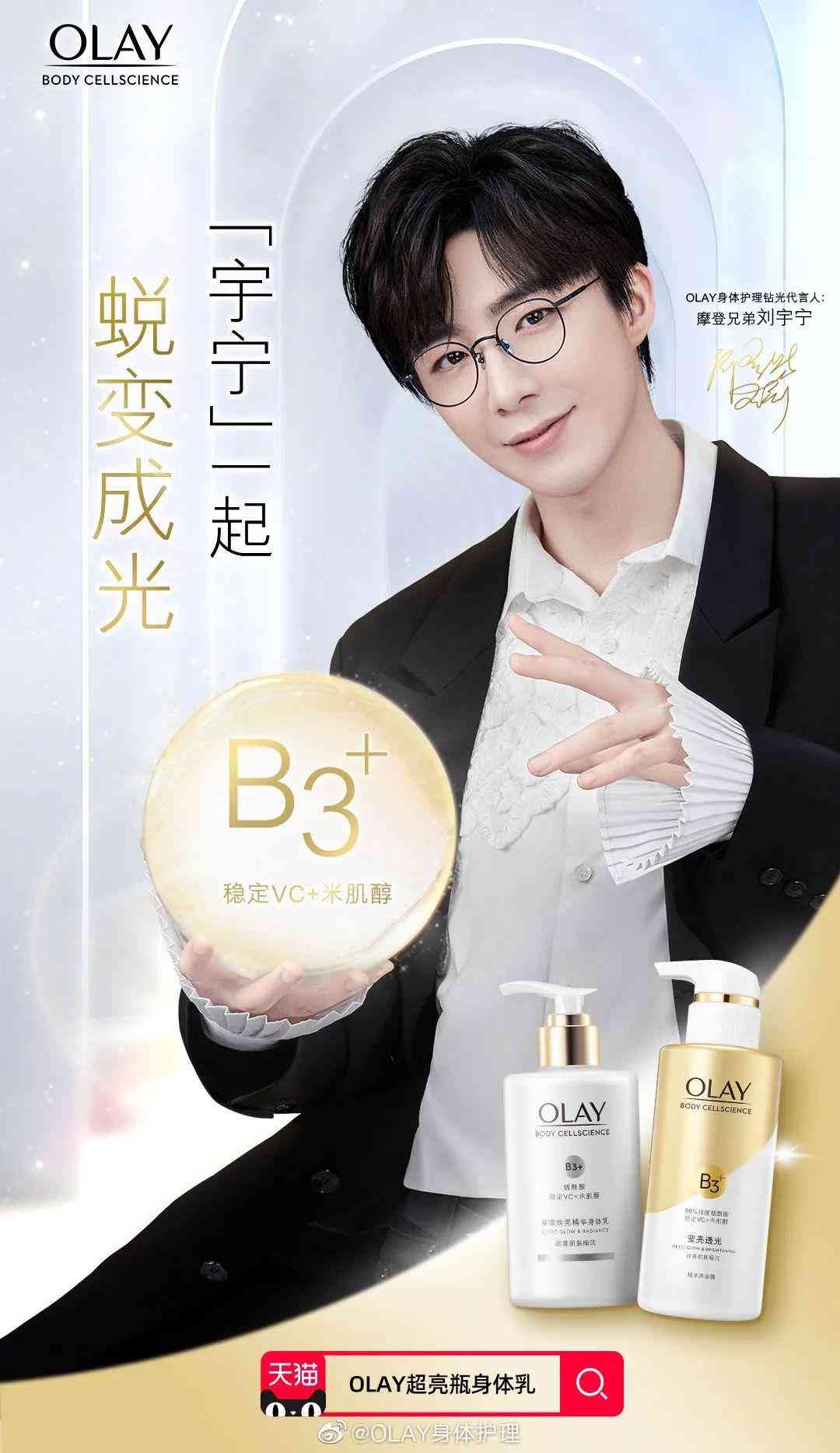 10月20日,刘宇宁成为OLAY身体护理品牌钻光代言人。