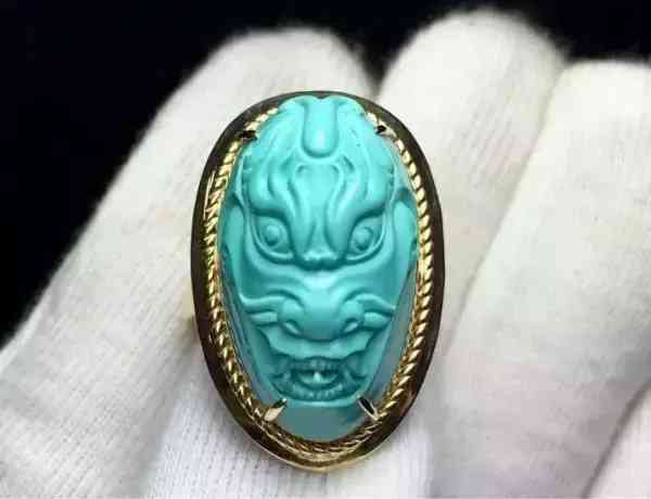 这种戒面一般都先看戒面的雕工如何,然后再看绿松的质地,是否无暇、无裂痕等,接着就是看戒面和戒托的融合度。
