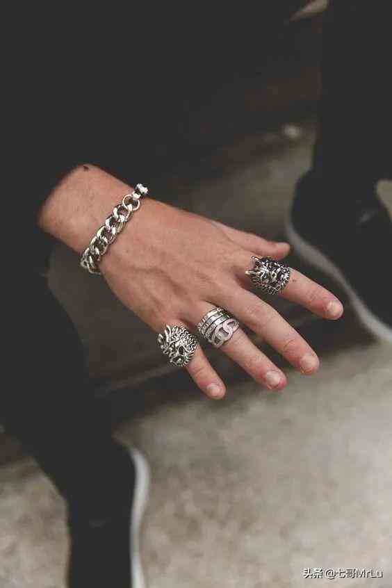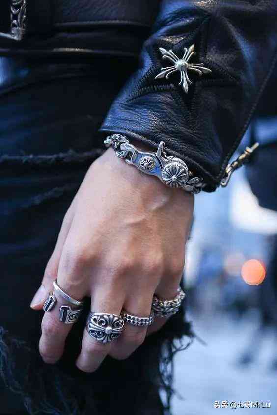 总之啊,穿什么衣服配什么戒指。穿的复古一点,就选择一些日系银饰品牌,比如 Stop Light、goro’s 等等,偏印第安风。穿的摇滚一点,就选择美系银饰品牌,比如 Chrome Hearts、clocks and colours,偏狂野不羁风。