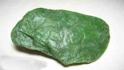 摩西西这个品种最大的特点,是具有浓而鲜艳的绿色,微透明,外观呈带有黑色斑块的翠绿色,和干青种翡翠相似度很高,不过,前者没有收藏价值,充其量也只是一种宝石质地的石头而已。