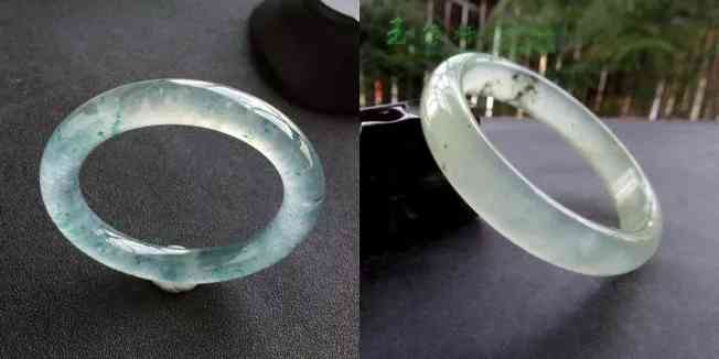 区分二者比较困难,不过也不是没有办法。一看光泽,冰莹玉的光泽比翡翠的弱;二看刚性,高净度、高抛光的翡翠有明显刚性(光泽锐利),冰莹玉几乎没有刚性;冰莹玉也没有翡翠独有的橘皮效应、色根、苍蝇翅等特征。下图左翡翠,下图右冰莹。
