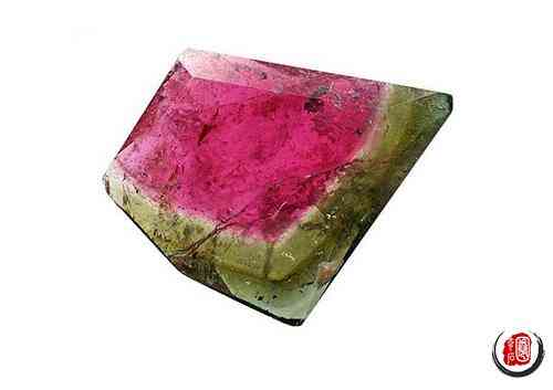 所谓西瓜红碧玺,就是在一块晶体上同时有红绿两种颜色,好像西瓜一样,也是碧玺最有特色的品种之一。清朝的西瓜碧玺,主要是阿富汗、巴基斯坦这 些清朝附属国进贡的。但据说慈禧太后收藏的和从她陵墓里挖出来的西瓜红碧玺,其实质量都不好。因为那个时候的开采技术比较落后,当年发现的矿藏也不怎么样。
