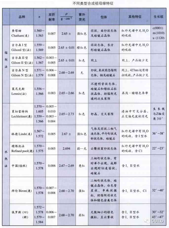 鉴于合成祖母绿主要有两种方法,即助熔剂法和水热法,其折射率、密度等物理特征与天然祖母绿很接近。
