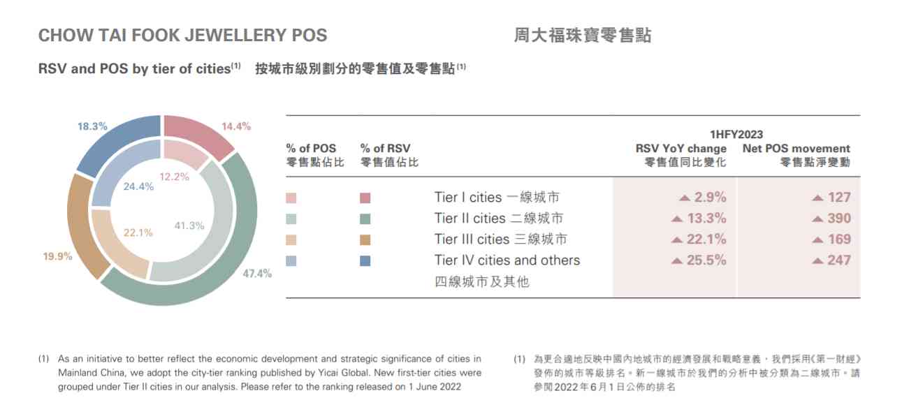 应当指出,下沉市场是周大福主攻目标之一。周大福表示,将联通加盟商深耕三线或以下城市和乡镇,开拓潜在市场。