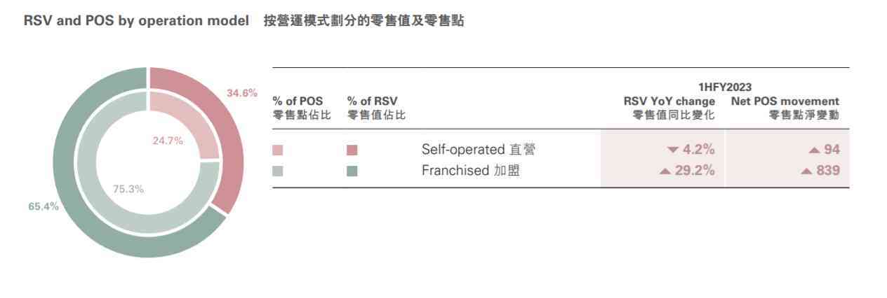 财报透露,预计于2023财政年度内(明年3月底之前),内地零售点数目达7000个。