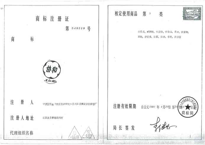 中国医学科学院皮肤病研究所苏州吴县保健日化联营厂早在1991年就注册申请并批准使用“协和”图及文字商标,后来将此商标转让于改制后的企业苏州市协和药业有限公司的法定代表人郑正华。