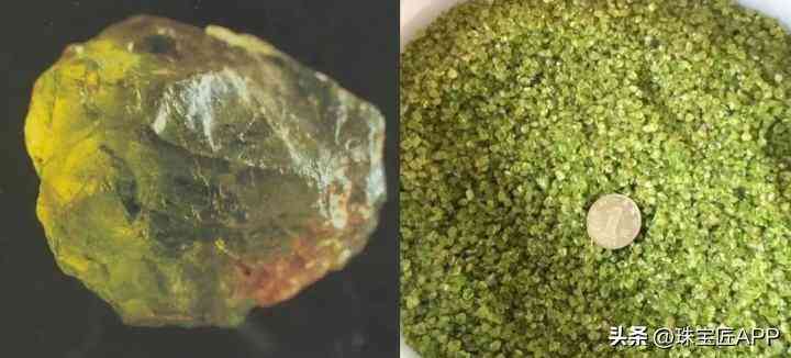 橄榄石,一种绿中带有黄调的绿色宝石,它还有一个特别的名字:叫“黄昏祖母绿”,也叫“月见草祖母绿”。