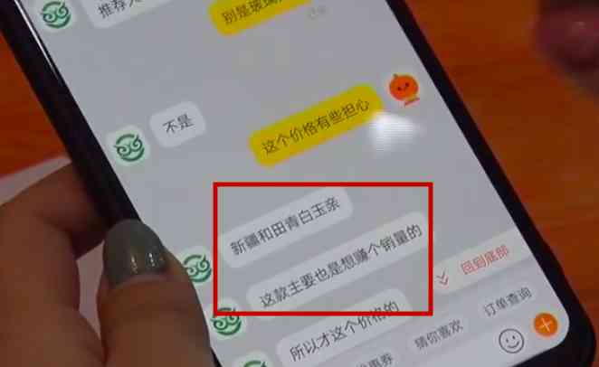 对于这个价格,王女士起初也存有疑惑。并且向客服人员对所售玉器的材质进行询问。客服称,自己卖的都是田青白玉,并非玻璃,便宜是为了赚销量。
