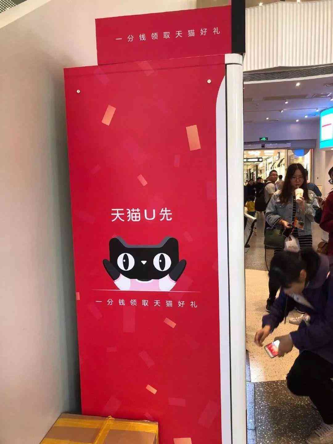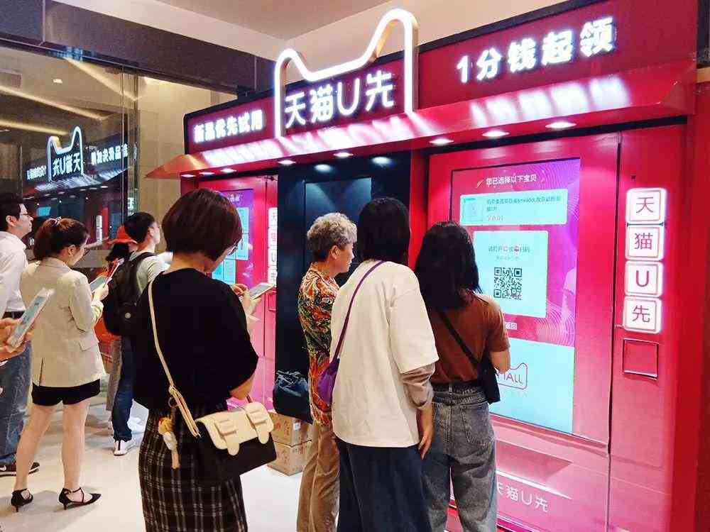 在上述品牌独自推出的个性化派样机旁边,往往还能看到一个一站式领取小样机器——天猫U先。