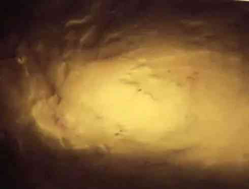 看图16这个镯子,看上去干干净净,结构也不错,白薯地,即便是用红外光谱仪检测,也没有能够发现异常(由于做B都是片料做的,所以,如果是B的话,镯子的任何一个点用红外做出来都是B)。但放大镜下看了一圈,发现了局部的问题如下图17: