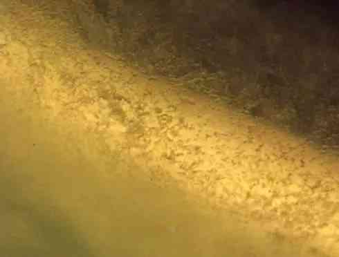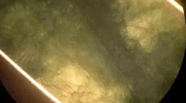 上面这张照片可以看出有黄色的氧化物存在。的确,这件货确实是A的,只不过表面的显现很有迷惑性,这个时候,透光检测就有一定的意义了。