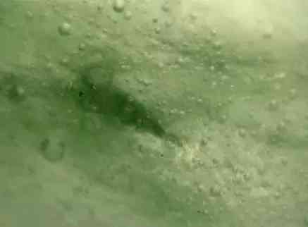 气泡圆圆的东西是气泡,这个再进一步对气泡部位做红外,发现是蜡。蜡多到这个程度,就可以确定是注蜡处理了(依据国家标准),商业上归为B货。