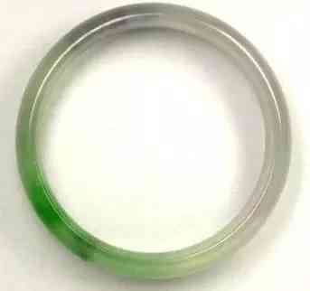 大家看上图20绿色部分,犹如中国画的手法,从浓到淡从有到无,过渡得几乎让人看不出从哪里开始有颜色!这个就是B的色根扩散,或者有人叫颜色发飘了。这是因为B货里的胶把隔阻颜色的裂隙充填了,光线很容易在翡翠颗粒之间相互传递而少了裂隙面的反射!再注意这只镯子有黑色部位。要知道,翡翠的黑往往是以点状分布的,所以有苍蝇屎的称谓。大家可能认为B里面不会有脏色,所以做B货的人就故意弄上黑色迷惑人,好在颜色有了扩散,否则肯定能迷惑更多的人。