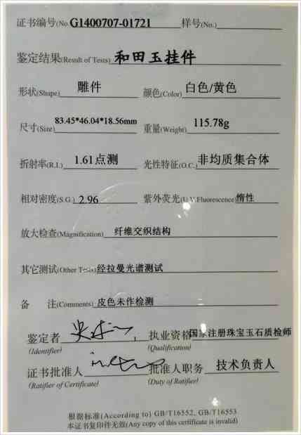 下图为上海市3家国检证书样本:鉴定价位:出具证书——100元/小件1件(挂件、手镯等;不出具证书几十元);200~600元/件(大件、摆件类)