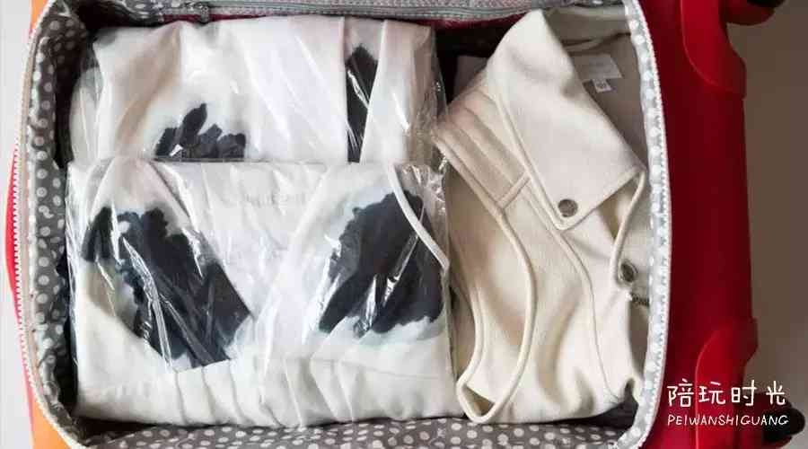 裙装、风衣或者一些浅色系衣物怕脏怕皱,可以用透明袋套起来,和其他行李隔离开。