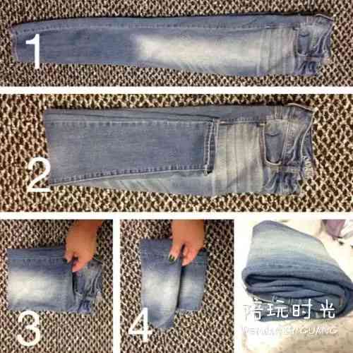 第二种方法就是“折叠方块”。类似牛仔裤等一些硬质布料,可以选择分段折叠,折成方块后,不要平铺,竖立着摆放在行李箱中,这样一来,哪怕带上7、8条裤子,也不会占据多少地方。