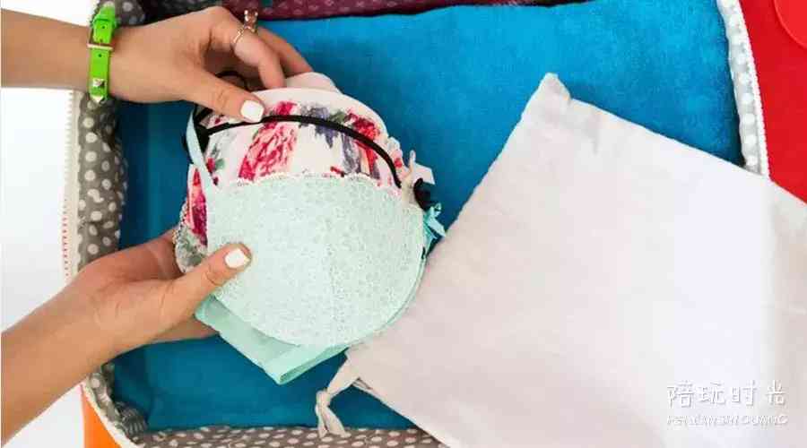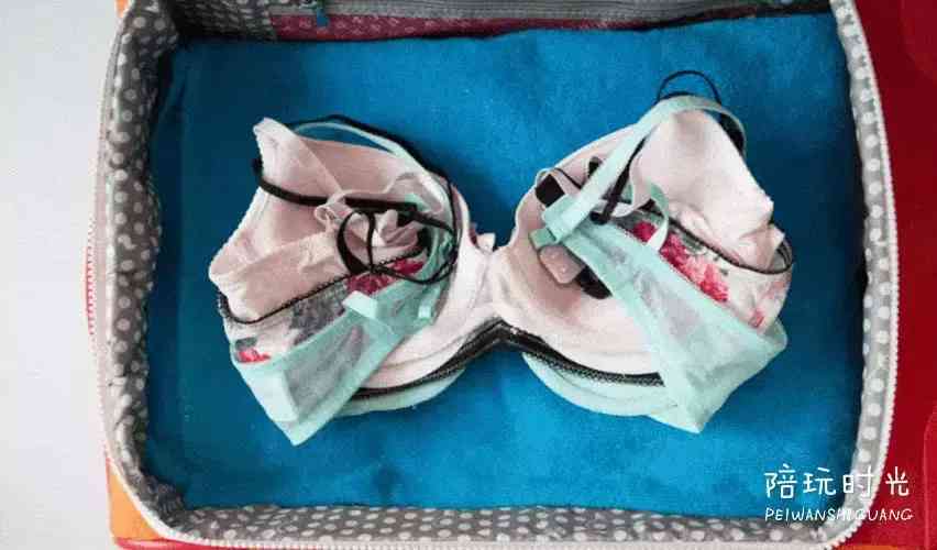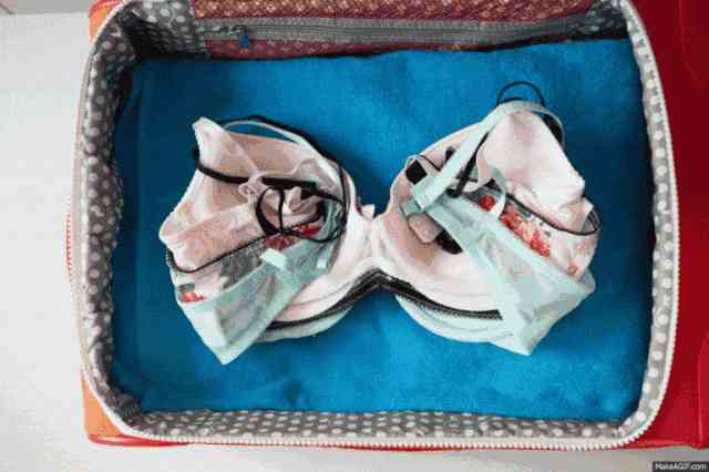 女士内衣要经常换洗,出门至少要带2-3件换洗。为了保持内衣不被其他重物挤压,先一件一件层叠排好。