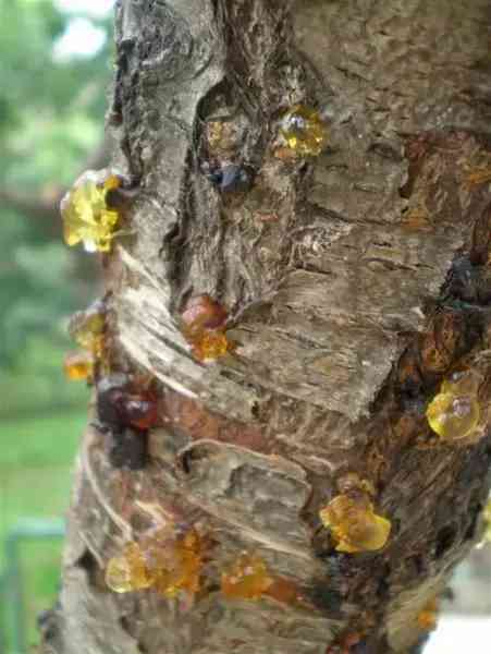 相信大家在生活中都看到过这样的图片,这些黄黄黏黏的东西叫树胶,树胶是从树干伤口流出的。
