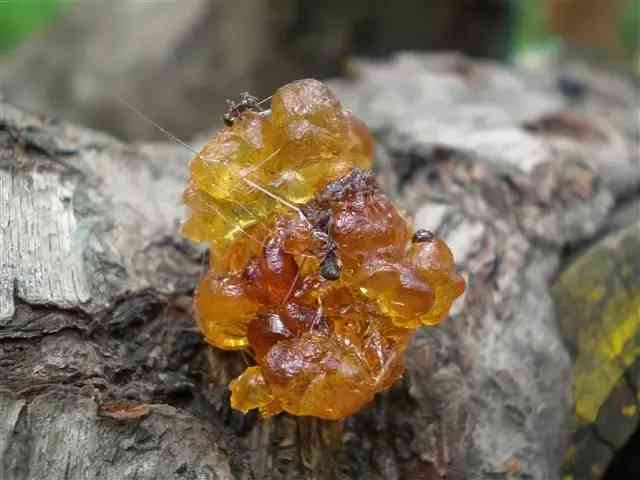 在地下几十万年后形成上图的样子,尚未完全石化。有的把这种叫柯巴树脂。