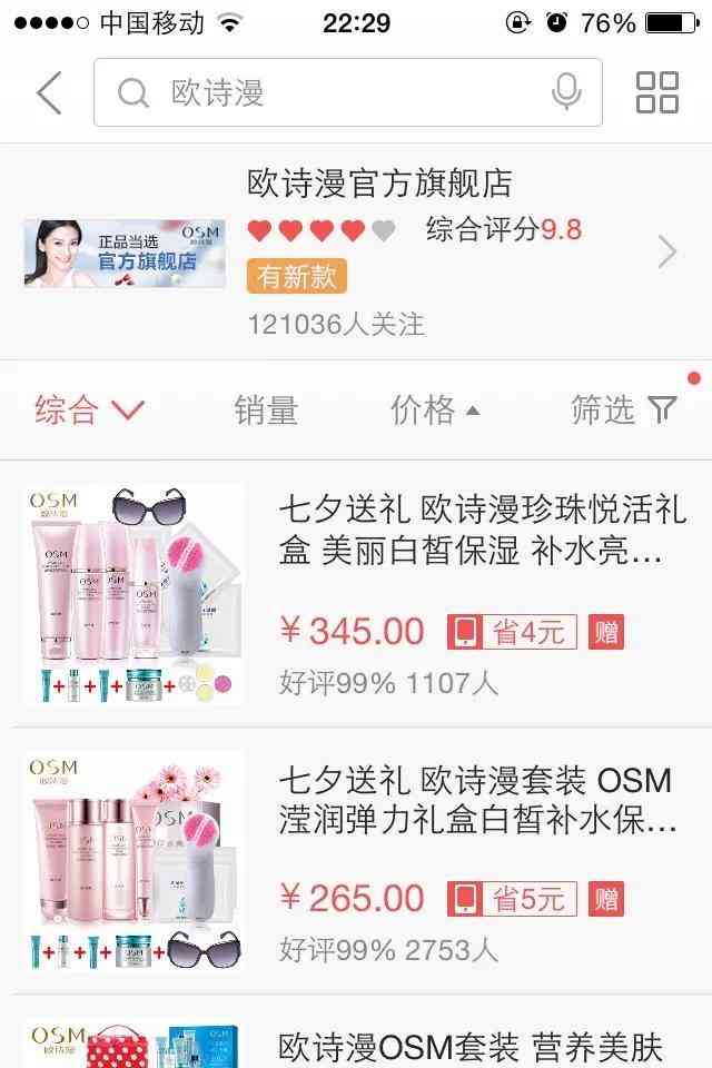 经过多日的考察,我决定先代理欧诗漫化妆品,一则他属于品牌,现在化妆品都讲究品牌调性,二则它属于国产品牌,代理门槛低一些。