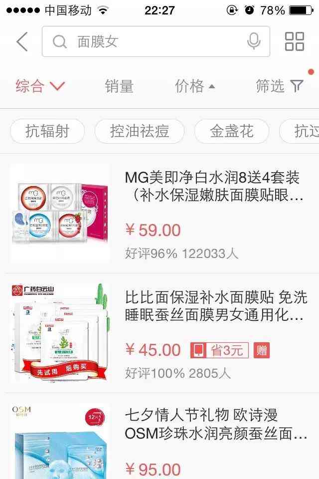 面膜的:补水面膜、面膜贴排.,面膜女第三,面膜第五。