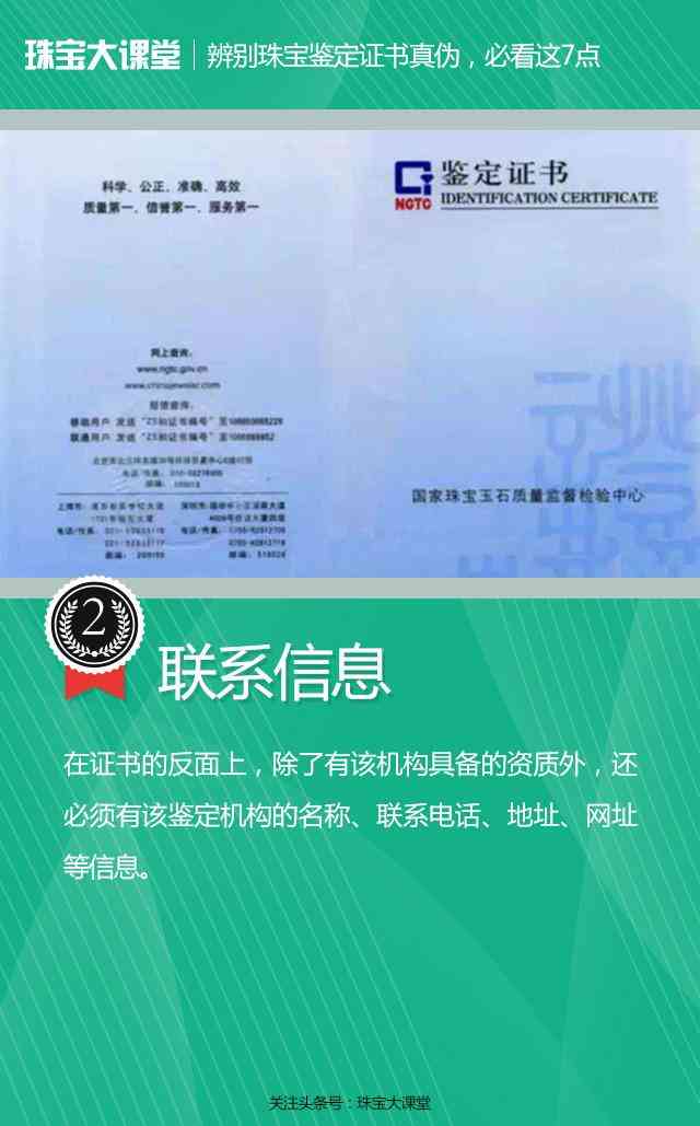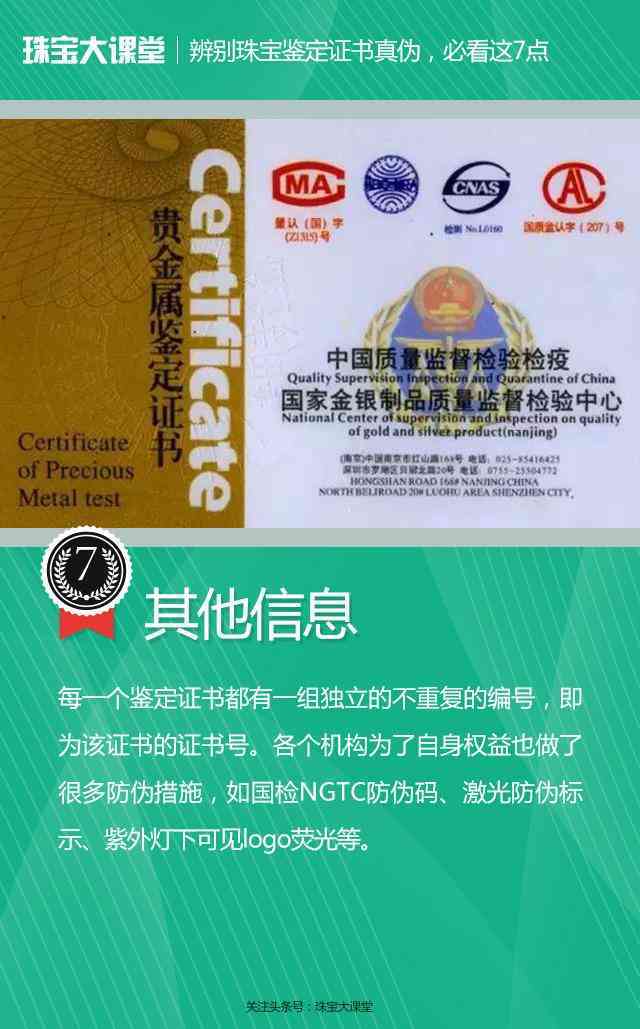 每一个鉴定证书都有一组独立的不重复的编号,即为该证书的证书号。各个机构为了自身权益也做了很多防伪措施,如国检NGTC防伪码、激光防伪标示、紫外灯下可见logo荧光等。