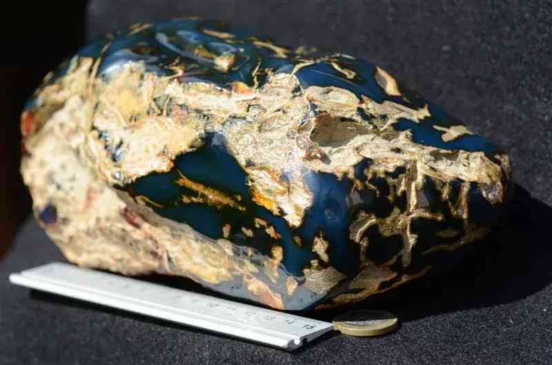 最后,在黑色背景下观察。这种角度是为了更加清楚观察琥珀原石表面的凹凸情况,从而判断琥珀品质高低。越光滑,越圆润,越是上品。