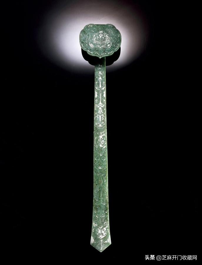 清乾隆碧玉雕仿古凤纹如意,尺寸:长45.5厘米,估价:RMB 900,000 ~ 1,200,000,成交价: RMB 1,782,500